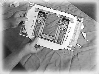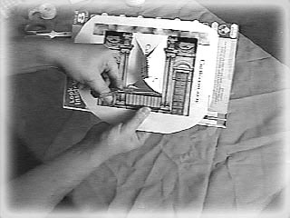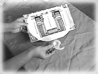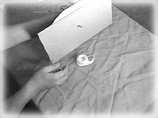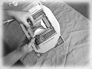 Put the tape dispenser on top of an old magazine, and put the Scenery over it. Use your scissors or a butter knife to poke the hole. |